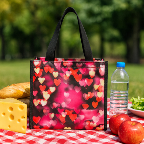 Bolsa de almuerzo con aislamiento con estampado de corazón de 9L, forro de papel de aluminio con cremallera, enfriador Oxford plegable a prueba de fugas para oficina de Picnic